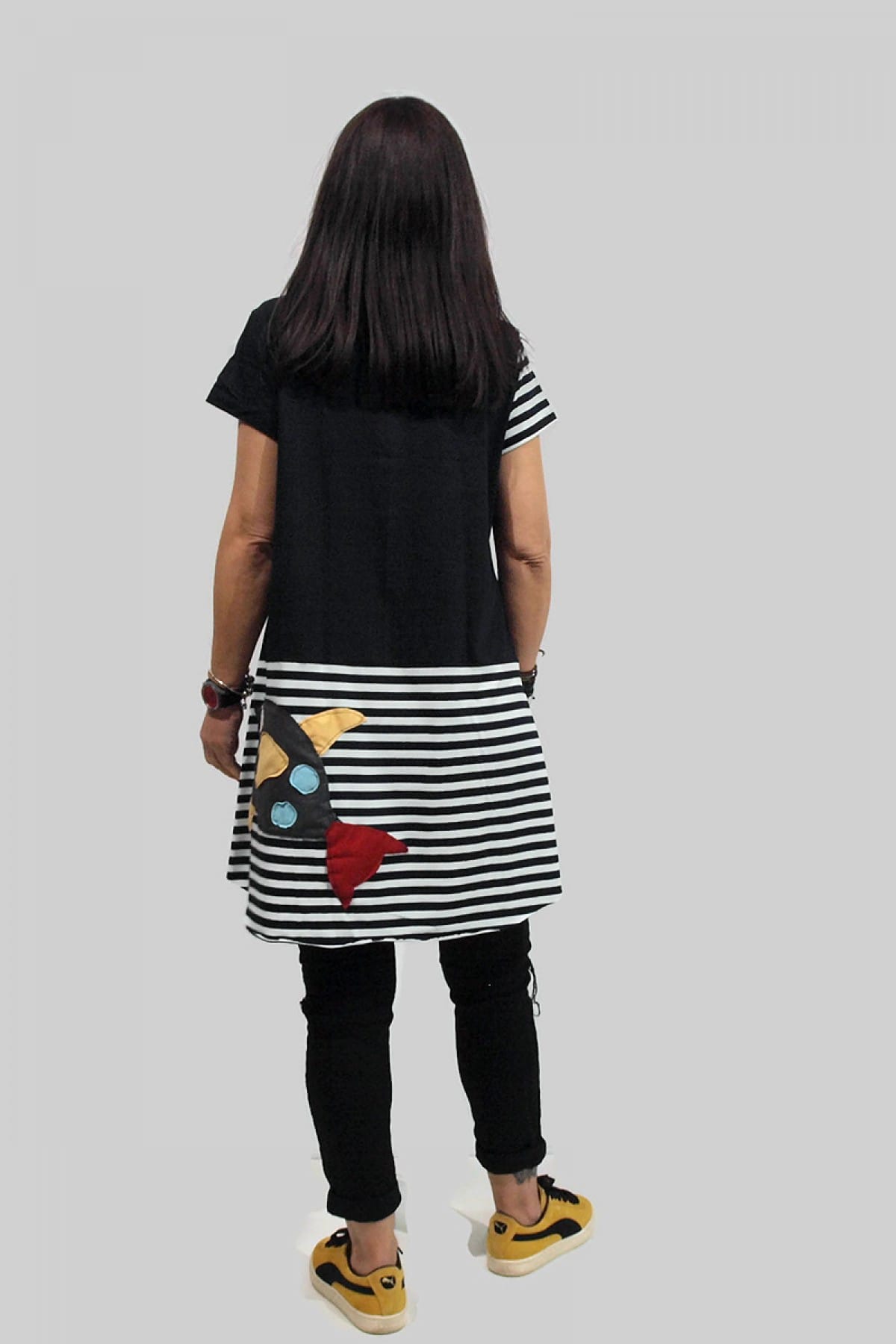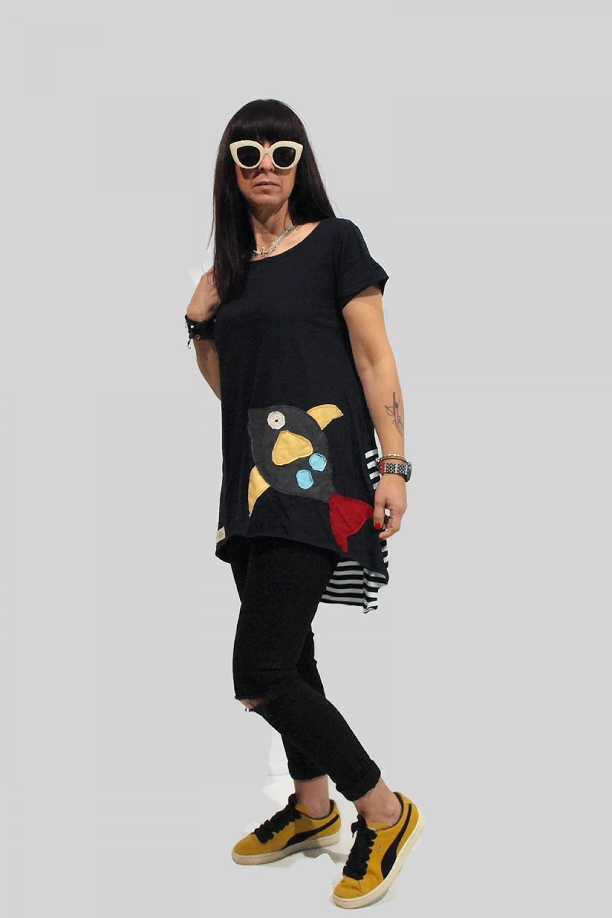 Handmade t-shirt for everyday looks with a wide line! From Nisos by D & T. Buy online now!Length: 70cm front / 90cm back. Fabric: 100% organic cotton.