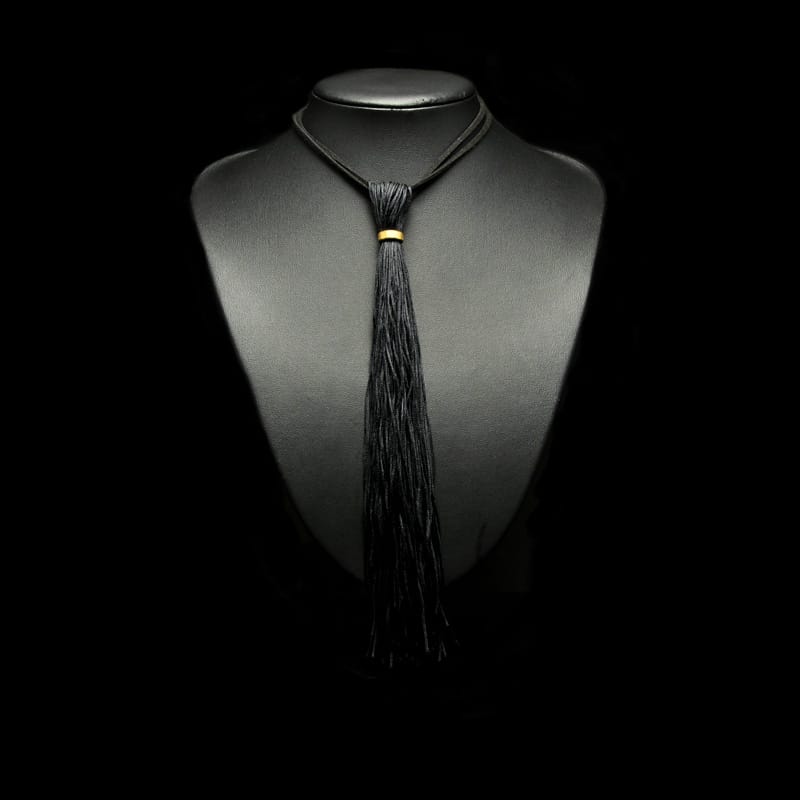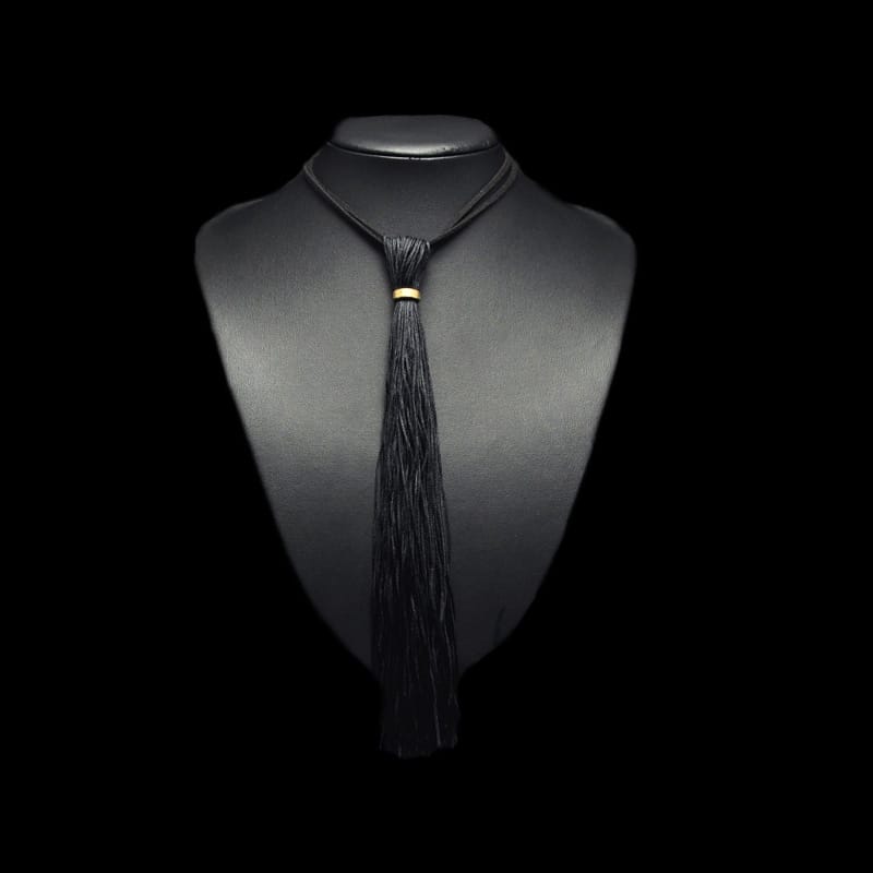 Χειροποίητο μενταγιόν φούντα με μεταξωτές μαύρες κλωστές και ρυθμιζόμενο μήκος. Μοναδικά χειροποίητα κοσμήματα από τη Nisos by D&T. Κάντε αγορά on line τώρα!